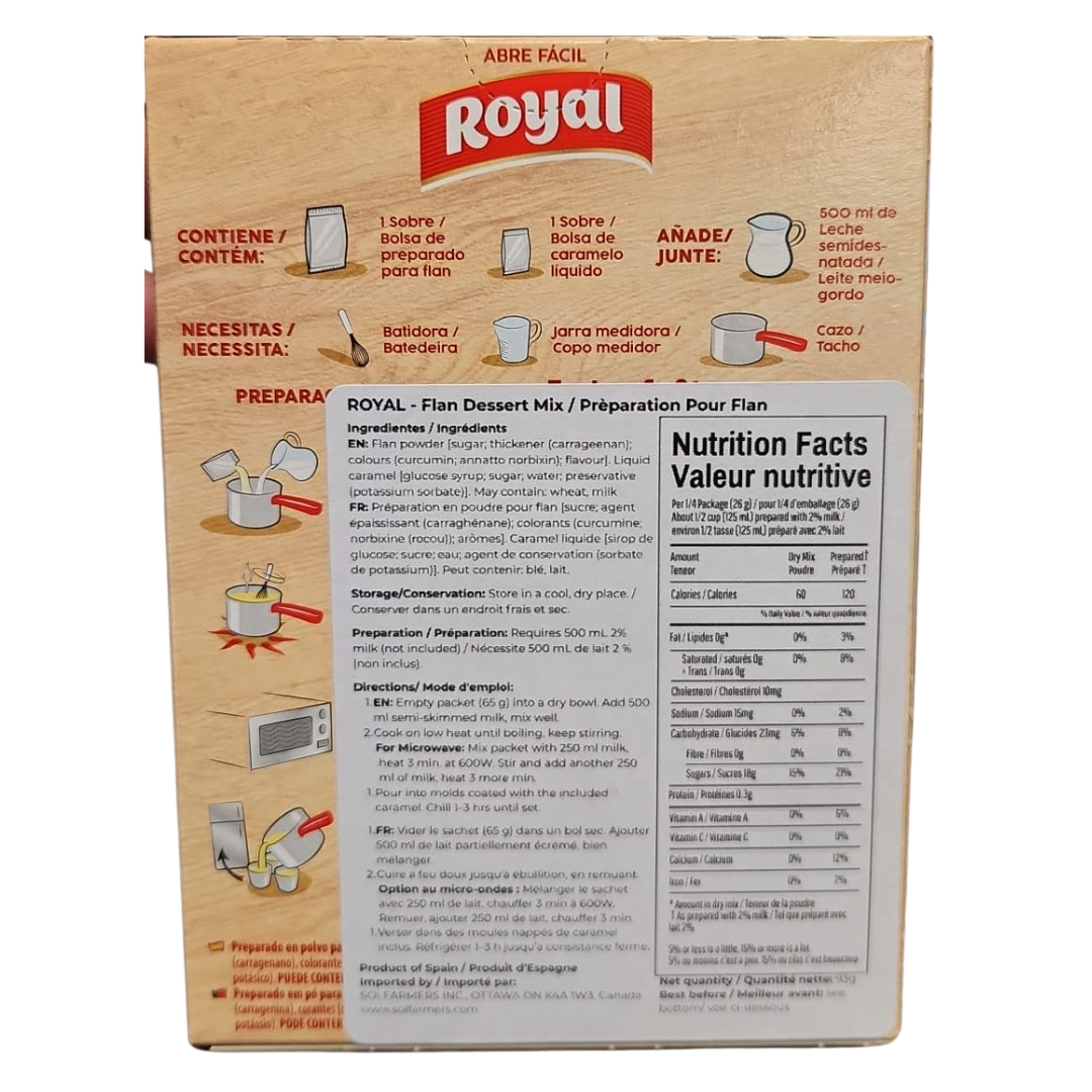 Indulge in a timeless dessert with Royal Flan Mix, a classic powdered mix that delivers a delectably creamy and comforting flan in just a few simple steps.