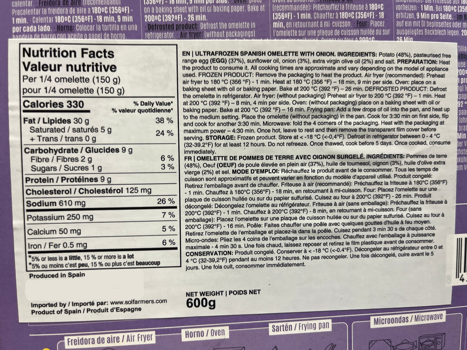 * This product is only available for Pick Up in our Ottawa Warehouse - This Potato Omelet cannot be sent by courier service because it is a frozen product